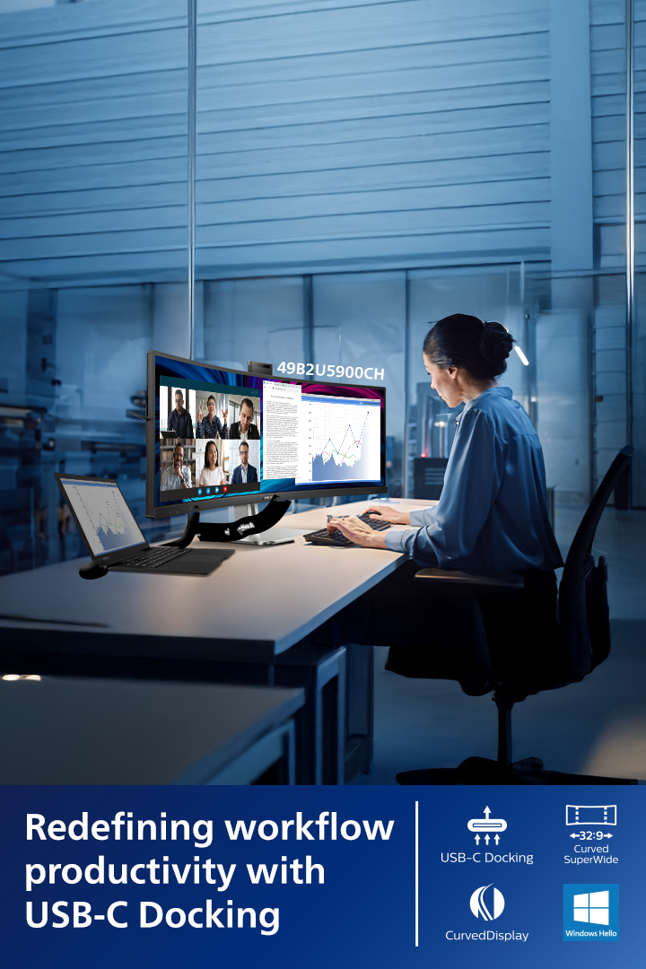 Philips 24B2U3301 23.8” IPS FHD USB-C Docking Monitor PD90W with Built-in Speaker and Ergo Stand